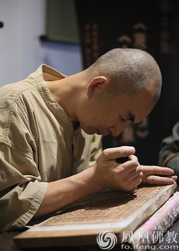 现场演示雕版印刷(图片来源:凤凰佛教)