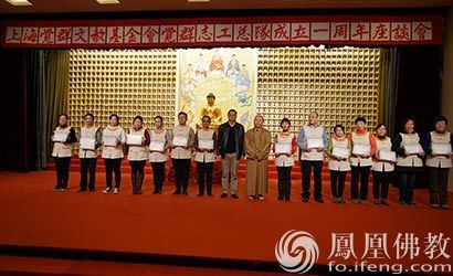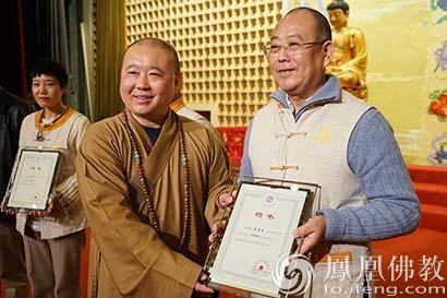 觉醒大和尚向优秀志工颁发证书(图片来源:凤凰佛教 摄影:孙雁如)