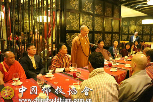 此次是中国佛教界首次正式组团对不丹进行友好访问,受到不丹政府的高度重视。当地时间2016年12月21日晚,不丹内政与文化部、外交部、中央寺院委员会、旅游局等多个部门在代表团下榻酒店举行友好招待会,欢迎代表团一行的到访。不丹内政与文化大臣达瓦•坚赞(Dawa Gyeltshen)先生、外交大臣丹曲•多吉(Damcho Dorji)先生、内政与文化部常务副部长索南•托杰(Sonam Topgay)先生、外交部常务副部长策林•多吉(Tshering Dorji)先生、中央寺院委员会秘书长嘎玛•策林•纳姆耶尔(Karma Tsering Namgyel)先生等出席友好招待会,与中国佛教友好代表团在轻松、愉快、友好的氛围中进行了广泛而深入的交流。