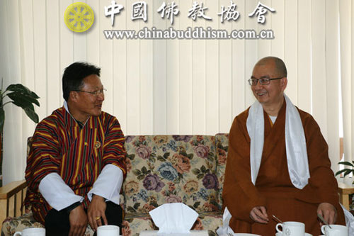 菩萨在线海外讯 为加强与不丹佛教界的交流与联系,增进中不两国佛教的法谊友情,中国佛教协会组成以会长学诚法师为团长,以副会长如瑞法师、宗性法师为副团长,以秘书长刘威先生为代表团秘书长,以国家宗教事务局外事司副司长薛树琪先生为代表团宗教顾问,以外交部亚洲司二秘罗冲先生为代表团外事顾问的中国佛教友好代表团,赴不丹进行友好访问和佛教交流。