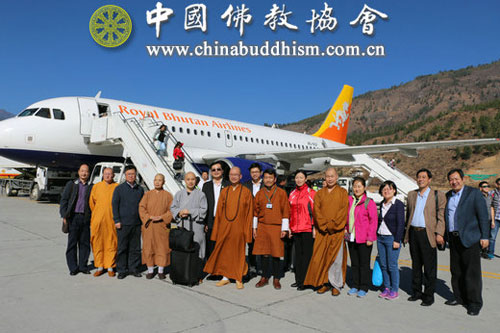 中国佛教友好代表团乘机抵达不丹帕罗国际机场,开始对不丹进行友好访问和佛教交流