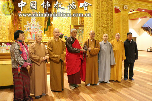 学诚会长向不丹释迦牟尼大佛像管理僧人赠送佛像