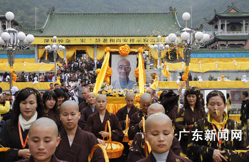 中新社汕尾十一月十六日电 (吴燕峰 李进朝 达理 宏亮) 广东尼众佛学院创始人老院长宏慧大和尚,于十月二十六日五时三十分在广东陆丰市定光寺圆寂,享年九十一岁。十六日上午,寺内举行隆重肃穆的追思法会、荼毗(火化)仪式。广东省佛教协会会长明生大和尚,广东省佛教协会常务副会长、顺德宝林寺方丈宏满大和尚,以及广州、福建、汕头、香港、台湾、东南亚等诸山长老和信众上万人出席了追思法会。