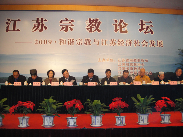 2009年11月11日,以和谐宗教与江苏经济社会发展为主题的首届江苏宗教论坛在南京举办。江苏省各市属民宗局局长、省民族宗教讲师团成员、省级机关相关部门、五大宗教团体负责人和部分高校及科研机构的专家学者共90人参加了论坛。 首届江苏宗教论坛由江苏省宗教局和省五大宗教团体联合主办。论坛共收到论文136 篇,经专家评审,58篇论文收录论文集,19篇论文分获一、二、三等奖。