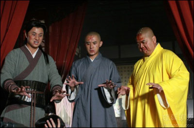 近日正在横店热拍的大型古装神话剧《活佛济公》曝光了一组搞怪照,照片中只见主演陈浩民、林江国、林子聪造型奇特,表情搞怪,尤为搞笑。