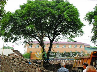 夜雨寺遗址遭拆除,寺中的大黄葛古树矗立在工地中央。