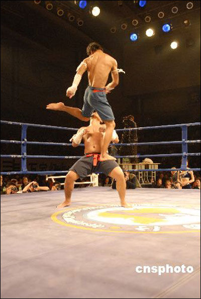 大型国际赛事 “泰拳中国行”——世界职业泰拳拳王争霸赛中国首战1月17日晚间在云南省红河州打响,来自十二个国家的十六位的职业泰拳手为中国观众献上了一道丰盛的泰拳饕餮大餐。比赛开始前,泰国最著名的五位古泰拳拳师为中国观众表演了古泰拳,作为泰国古泰拳代表人物托尼贾的师弟,五位拳师的表演让现场观众有种看电影的感觉,许多精彩绝伦的武术动作让大家连呼过瘾。