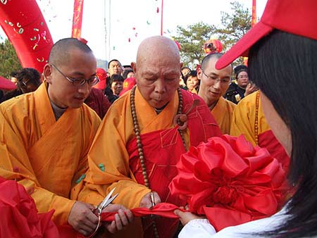 中国佛教协会会长一诚长老为舍利塔落成剪彩