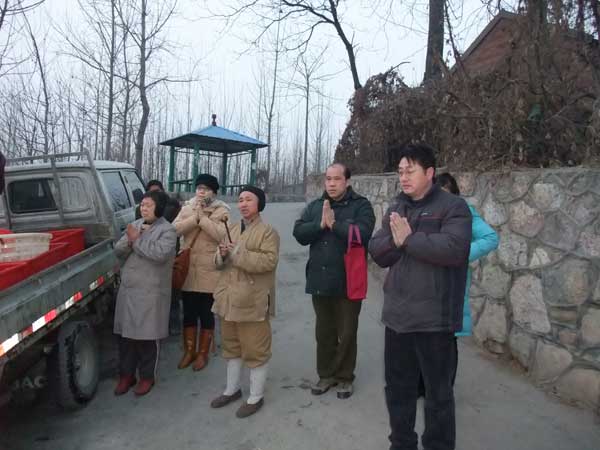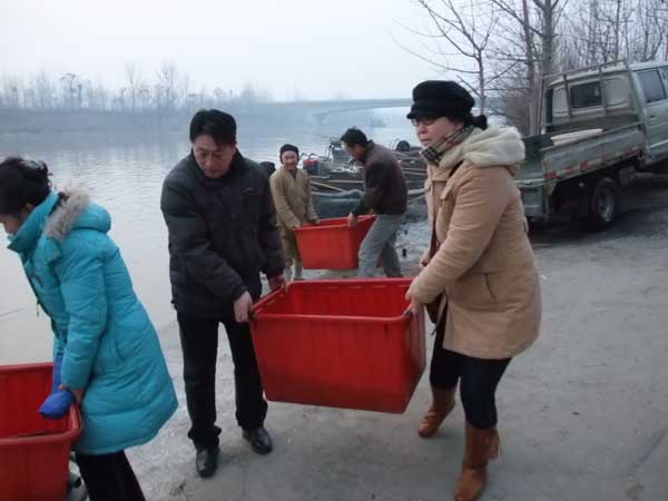 这天早上6点钟,江苏徐州兴化寺方丈果光大和尚委派监院常信法师带领众居士,在段庄菜市场,购买了1.5万元的鲜活长鱼、甲鱼、黑鱼、泥鳅等,冒着零下4-5度的风寒,赶到大运河畔,由常信法师带领众居士举行完放生仪式后,将几万尾鲜鱼放归波浪滚滚的大运河。