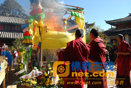 2009年12月29日,丽江噶玛噶举喜绕朗达大师荼毗法会在云南省丽江市文峰寺举行。东宝·仲巴仁波切、各寺院金刚上师及僧众参加。
