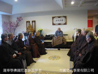 2010年2月4日下午,台湾莲华学佛园尼众在莲华学佛园园长修慈法师的带领下到梦参长老驻锡处参谒,并就打念佛七等修行上的问题,请益梦参长老。