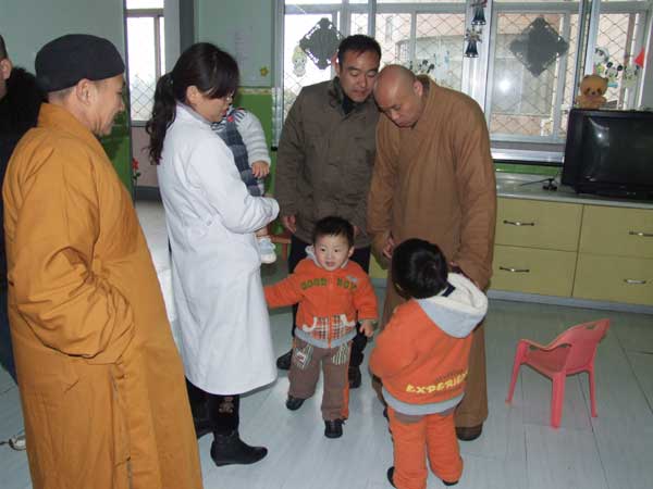 2010年2月9日上午,江苏省佛教协会副会长、徐州佛教协会会长、徐州云龙山兴化寺方丈果光大和尚带领徐州云龙山兴化寺监院常信法师、徐州云龙山兴化寺知客常顺法师以及兴化寺慈善功德会的负责同志、徐州佛教协会办公室的同志,前往徐州市社会福利院慰问。