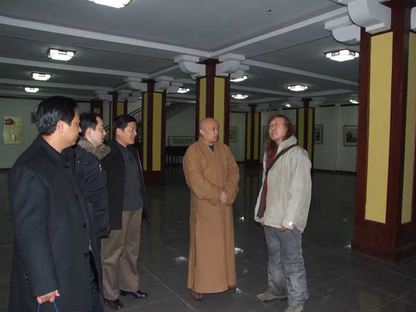 2010年2月8日,中国美术学院油画系研究生、杭州师范大学教授、油画家、摄影家靳庆金先生,杭州师范大学系主任助理杨毅一行来江苏徐州兴化寺参观果光大和尚书画展。