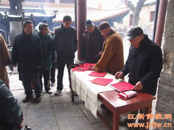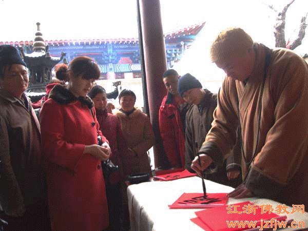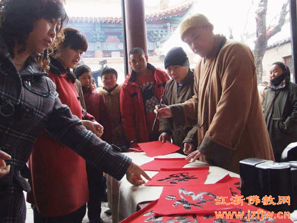 2010年2月12日上午,徐州兴化寺组织法师现场泼墨书写“福”字赠送春联的祈福活动。