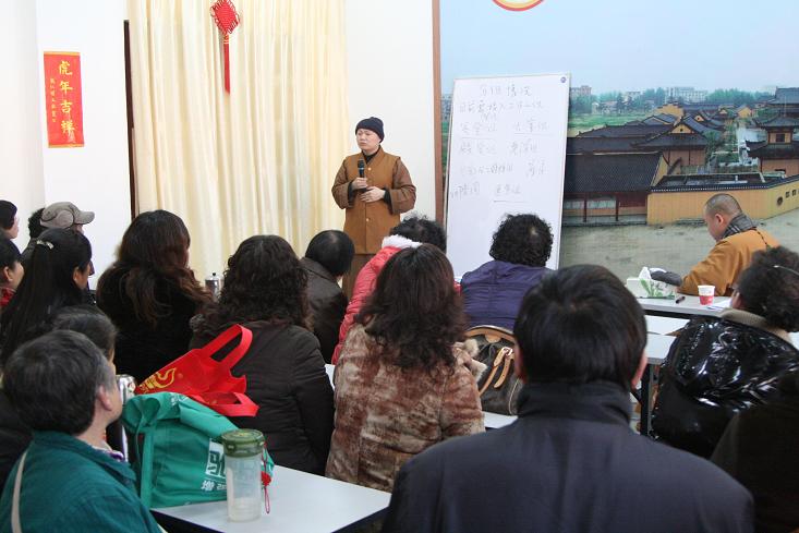 为了确保此次庆典活动圆满殊胜,做到服务优质,待客周到,让每位嘉宾高兴而来,满意而归。能仁寺特于2月26日举办庆典活动义工第一次培训大会,并编印《能仁寺3.25庆典志愿者手册》。参加这次活动的有县宗教局羊兆金局长、孙桂成副局长、能仁寺住持曙正法师、监院本慧法师、德广法师等及来自淮安市及涟水各地信众150余人,大家积极参与,热情高涨。