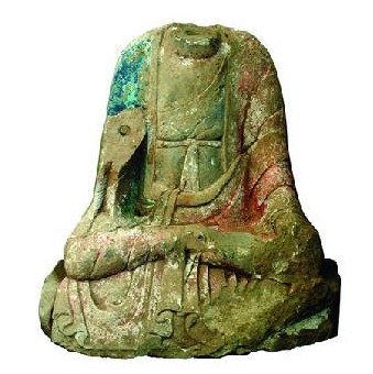 在发现的4件大型隋代造像中,其中两尊坐像、两尊立像,其中三件雕像上竟然还有红、绿彩绘,用不同颜色区分出了衣服的层次关系,十分罕见。在一件坐像中,佛像身穿三层衣服,最里为袒右贴身内衣,胸前系一带,中层穿红色宽袖僧袍,下摆宽大,遮盖住台座前部,最外右肩斜披一件绿色覆肩衣。这些保存的彩绘,对于研究佛装具有重要的作用。