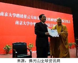 获南京大学颁予“中华文化研究院名誉院长及客座教授”的佛光山开山宗长星云大师,3月22日上午即应邀在南大敬文活动中心做了首场讲座,再次强调文化的力量深远广大,现在要把前人历史留下来有价值、有意义、实用的文化内容,藉助南京大学“中华文化研究院”积极培养人才,让中华文化再发展、提升,未来光大于全世界指日可期。