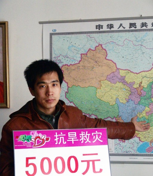 “感恩的心”最小的志愿者,捐出自己攒下来的100元压岁钱,。支援灾区小朋友有水喝!