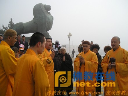 2010年3月31日,辽宁省大连市旅顺蟠龙山正觉讲寺在军港公园海岸边举行放生活动。宣机法师主法,领众诵放生仪规,约50名信众参加了放生活动。(文:一平)