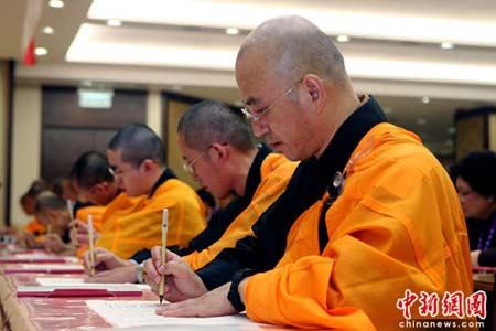 2010年4月11日下午,来自十方的千多位佛教信众,在香港佛光山道场参加“百万心经入法身”千人抄经修练活动。位于九龙湾宏光道的香港佛光山道场,当日上午,举行了道场落成暨佛像开光大典。