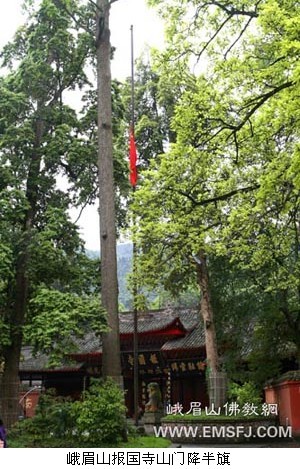 2010年4月21日,全国哀悼日,四川省峨眉山全山寺院以降半旗、诵经祈福超荐等各种形式,哀悼青海玉树震区罹难同胞。