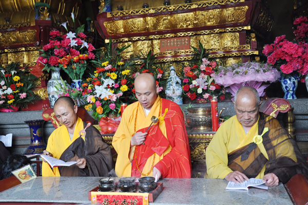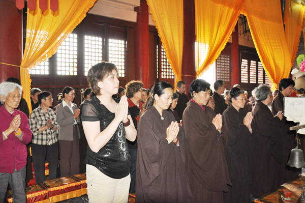 2010年5月21日是农历四月初八,这一天是浴佛节,下午2时,在兴化寺大雄宝殿举行了三皈五戒仪式,上百名佛门弟子分别接受了三皈依和五戒仪式。果光大和尚先向新皈依弟子阐述开示,从皈依佛、皈依法、皈依僧三宝的角度引导大家觉悟人生,断除烦恼,寻求解脱;接着按仪规传授五戒:不杀生、不偷盗、不邪淫、不妄语、不饮酒。