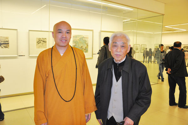 开幕当天,虽然下着雨,但前来参观画展的人却络绎不绝。就连80多岁的老市长何赋硕老先生也兴致勃勃地前来参观。不少人在大和尚两幅温润淡雅、禅意盎然的画前驻足浏览,并给予很高的评价。