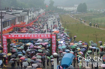在纪念活动中,太湖县当地干群万余人参加了纪念活动。
