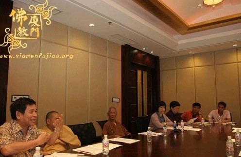 昨天下午1时许,“闽台佛教文化交流研讨会”筹委会主任:普法大和尚,常务副主任:则悟大和尚,副主任:道元大和尚、定恒大和尚,成员:世起法师、灵耀法师、法源法师、法云法师、净心法师、仁慈法师、德煌法师、能悟法师、宣朗法师、周书荣居士、李建群居士、沈镇川居士等在海沧鼓浪湾大酒店会合,共同商议“闽台佛教文化交流研讨会”的相关事宜。省民宗厅高闽处长、市民宗局黄镇辉处长等领导到会指导。会议由则悟大和尚主持。