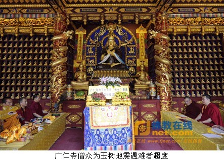 与此同时,陕西省唯一的藏传佛教寺院广仁寺也按照藏传佛教仪轨举行了为玉树灾区“七七”祭日超度法会。以此功德回向亡者离苦得乐、往生净土,伤者身病蠲除、早日康复