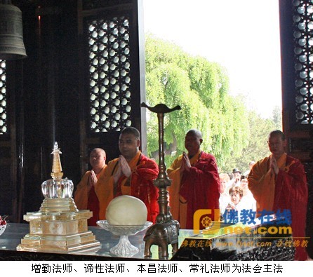 此次法会由中国佛教协会副会长、陕西省佛教协会副会长增勤法师,陕西省佛教协会副会长、草堂寺方丈谛性法师,西安市佛教协会副会长、香积寺住持本昌法师,西安市佛教协会副秘书长、卧龙寺西堂常礼法师主法。罔极寺常瑞法师、清凉寺传恒法师等法师,及四众弟子数百人参加了此次超度祈福法会。