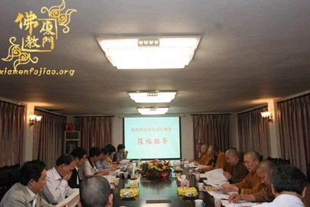 2010年6月4日上午8点20分许,福建省民宗与宗教事务厅厅长王聚仁、副厅长林致知、宗教一处处长高闽,厦门市委统战部副部长、市民族宗教事务局党组书记陈建德,厦门市民宗局局长曾文瑛、副局长蔡永华、处长黄镇辉等领导到厦门市佛教协会听取了海峡论坛·闽台佛教文化交流研讨会筹委会的工作汇报。会议在市佛协会议室召开,省佛协常务副会长、筹委会主任普法法师主持会议。