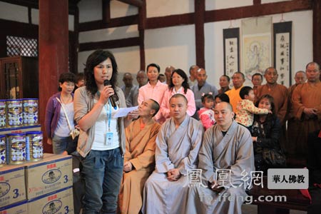 凤凰网代表在发言中说:512地震发生后,凤凰网华人佛教有缘在第一时间记录了108罗汉娃的出生瞬间和两年来孩子们的成长历程,我们目睹和见证了围绕108罗汉娃所展示出来的人间大爱和慈悲精神。在此,我代表所有关注108罗汉娃的网友向什邡罗汉寺和贝因美集团表示感谢。也希望能有更多的企业和个人加入到公益慈善的行列中。