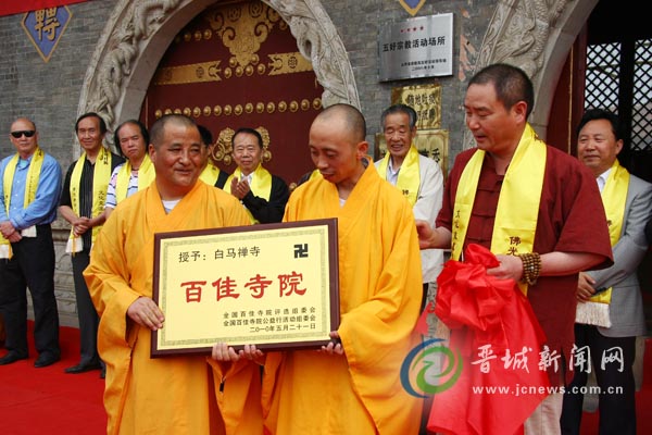 在6月10日上午举行的开幕仪式上,中国佛教协会还授予白马禅寺为全国“百佳寺院”,授予白马禅寺住持释能继为全国“百佳名僧”。