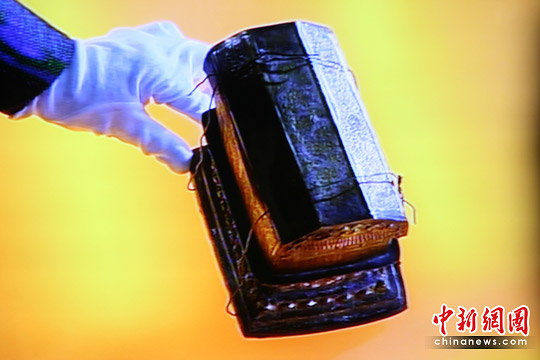 “佛顶真骨”和“感应舍利”真容展现在世人面前。(图片来源:中国新闻网)