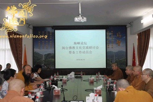 6月16日,第二届海峡论坛·闽台佛教文化交流研讨会距开幕还有2天,下午3时许,在南普陀寺慈善会二楼会议室召开“第二届海峡论坛·闽台佛教文化交流研讨会筹备工作动员会”。闽台佛教文化交流研讨会筹委会主任普法大和尚、常务副主任则悟大和尚、副主任定恒法师、接待组组长净心法师、秘书组组长法云法师、后勤组组长仁慈法师等相关人员参加了此次会议。省民宗厅高闽处长等及市民宗局领导莅会指导。会议由定恒法师主持。