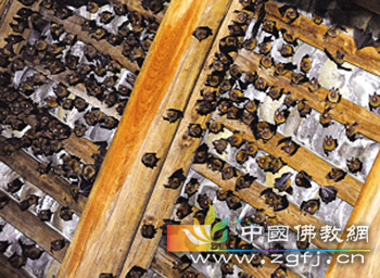 屋檐下顿时唧唧声不息,无数个黑影张开足有二十厘米的翼膀,在屋檐下或盘旋或停留,空中不时有粪便砸到地上。在这个庙的屋檐下,如此多的蝙蝠突然出动,给现场带来一股阴森幽暗的感觉。