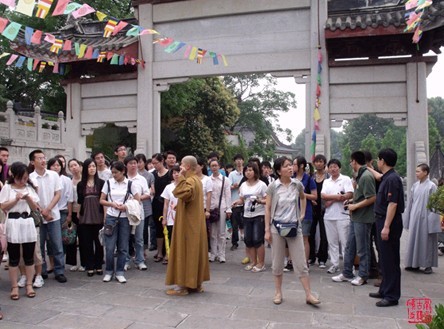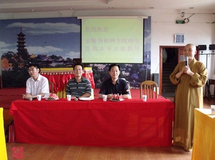 2010年6月25日上午,江苏省南京市金陵协和神学院本三、本四班学生一行100多人在江苏省宗教局政策法规处周平处长、神学院文革老师的带领下到鸡鸣寺参访。鸡鸣寺佛学院教务长慧吉法师热情接待了参访团一行。
