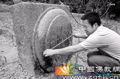 随后,记者与李晓宏又在村民的玉米地里发现了很多瓦片。玉米地旁不远处,四块上圆下方的石头引起了李晓宏的注意。“这是柱础石。”李晓宏肯定地说。经过现场测量,柱础石呈三层,最大的一块直径为1.2米。据李晓宏讲,柱础石主要用作建筑物立柱的底座,像这么大的柱础石十分少见,而且能说明当时寺庙的规模是非常宏大的。经过查看研究,李晓宏告诉记者,根据现场的情况初步判断,这可能是一座唐代的皇家寺庙,而且规模较大。当日,一共测量发现了25块大型的柱础石以及部分彩色的瓦片和刻有鳞片花纹的瓦片。