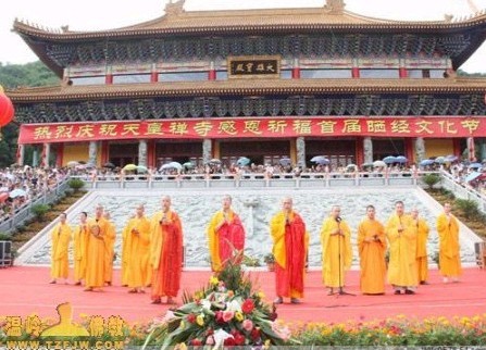2010年7月17日(六月初六),浙江省台州市泽国镇天皇禅寺隆重举行了“首届晒经文化节”、“和谐中华,祈福中国”梵呗音乐盛典法会。