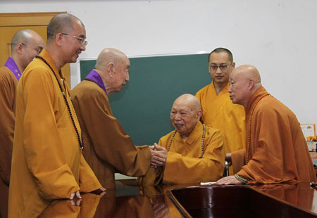 参访团一行在传印长老、学诚法师等的陪同下看望了中国佛教协会名誉会长一诚长老。在看到一诚长老良好的精神状态后,觉光长老一行感到欣喜,并祝愿一诚长老永远康健。