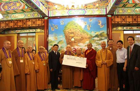 在国家宗教事务局副局长蒋坚永,传印长老,学诚法师等的见证下,港佛联向青海玉树禅古寺捐赠了154万余港币用于禅古寺灾后重建,禅古寺住持洛卓尼玛仁波切代为接收。