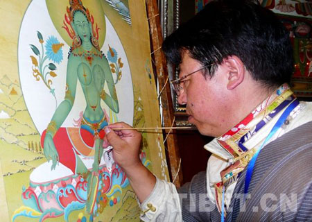 尼玛次仁说,举办此次“首届西藏唐卡艺术博览会”旨在深入贯彻落实中央第五次西藏工作座谈会精神,全面贯彻中央和自治区关于进一步继承、弘扬和发展民族优秀传统文化的一系列重要部署和安排,充分展示西藏唐卡艺术资源的历史悠久、独具特色和丰富多彩,以及对西藏唐卡艺术的传承、保护和发展工作取得的显著成效。积极挖掘唐卡艺术深藏的产业价值,有力推动唐卡艺术的合理利用和产业化发展,推进西藏优秀传统文化艺术在新时期焕发出更加夺目的光彩,为西藏经济跨越式发展发挥应有作用。(图:贡桑拉姆,文:肖铮)