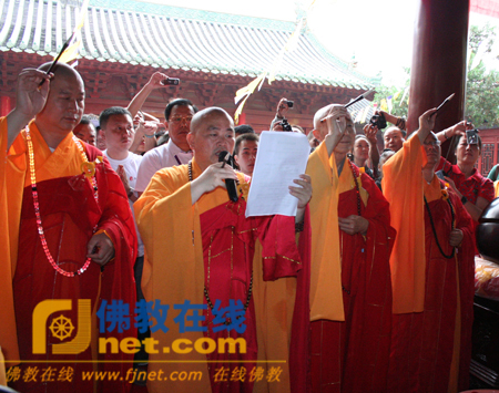 2010年8月14日上午9时,河南省嵩山少林寺“2010年第五届少林问禅之机锋辨禅活动”开幕式暨药王城佛像开光法会隆重举行。