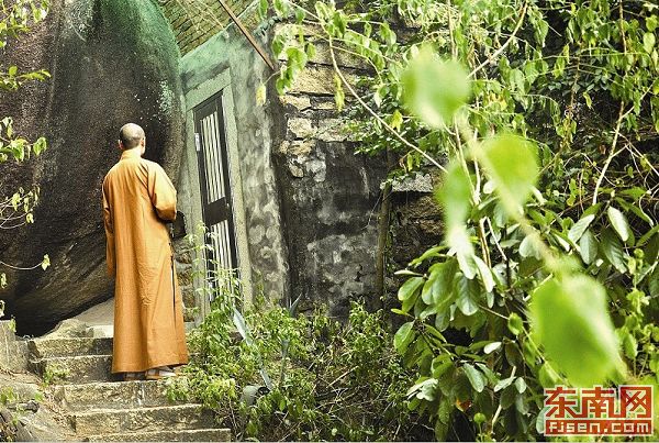 记者得知,悟鼎法师所在的闭关室,曾是弘一法师闭过关的地方。说是闭关室,其实是从一块巨石下挖出一个小山洞,顺着石头,再建房门和屋檐等。