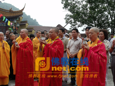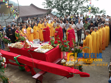 2010年8月28日上午10点整,江苏省南京市古鸡鸣寺的下院溧水县东庐山观音寺举行了圆通宝殿上梁法会,由古鸡鸣寺住持莲华法师、监院永定法师、能坚法师主法洒净。