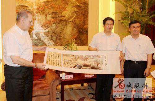在成功举办了首届青年奥运会后,国际奥委会主席罗格携夫人今天(8月30日)带着轻松的心情出现在了名城苏州,他们受到了省委常委、市委书记蒋宏坤,市委副书记、市长阎立的热烈欢迎。