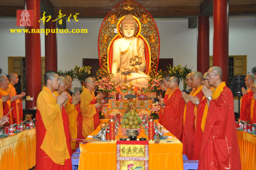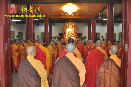 法会礼请本藏法师等三大士主法,闽院副院长法源法师(紫竹林寺监院)、办公室副主任悟源法师(副寺)和副教导长超波法师(副寺)在佛前代众沐手焚香、虔诚礼拜,祈愿世界和平,风调雨顺,人民安乐,灾疫永离;祷祝本寺界内乃至十方法界之一切众生现在者消灾延寿,过去者往生净土。