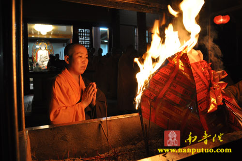 2010年9月4日,值秋季开学之际,闽南佛学院女众部隆重举行了一年一度的瑜伽焰口法会。下午5时许,南普陀寺及闽院男众部六十余位法师在南普陀寺知客演慧法师、本四班主任法仪法师的带领下,来到闽院女众部所在地——厦门紫竹林寺,于大雄宝殿内施放瑜伽焰口一堂。