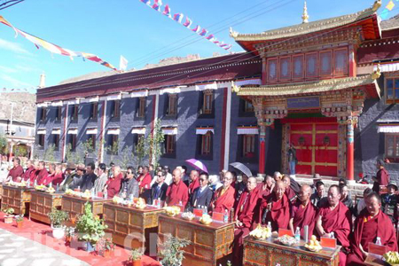 法号阵阵,佛乐声声,2010年9月5日上午,位于西藏日喀则地区萨迦县的萨迦寺喜逢盛事,迎来了其学经院乔迁开光盛典。